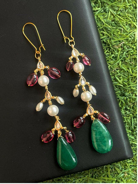 Joban Fashion Natural Stone Kundan Pearl Earring