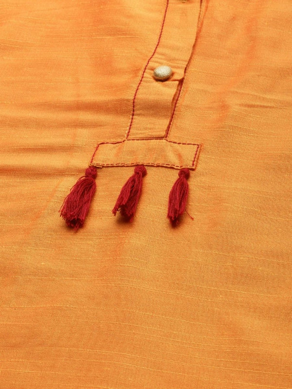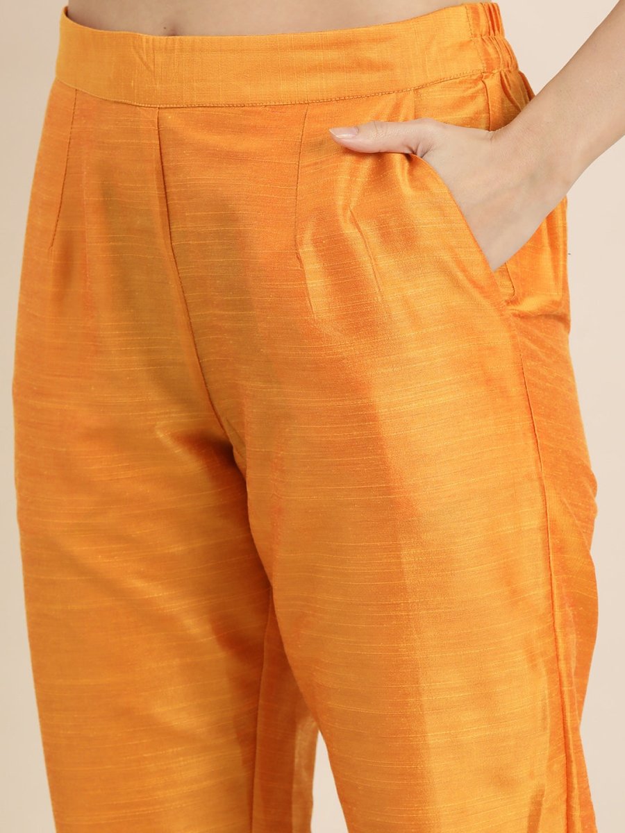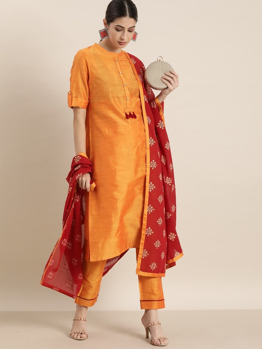 Orange solid Kurta with Trousers with dupatta