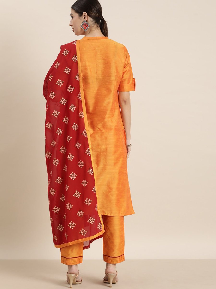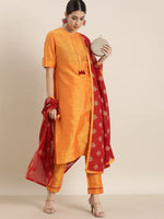 All About You Women Orange Regular Kurta with Trousers & With Dupatta - XS