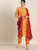 All About You Women Orange Regular Kurta with Trousers & With Dupatta