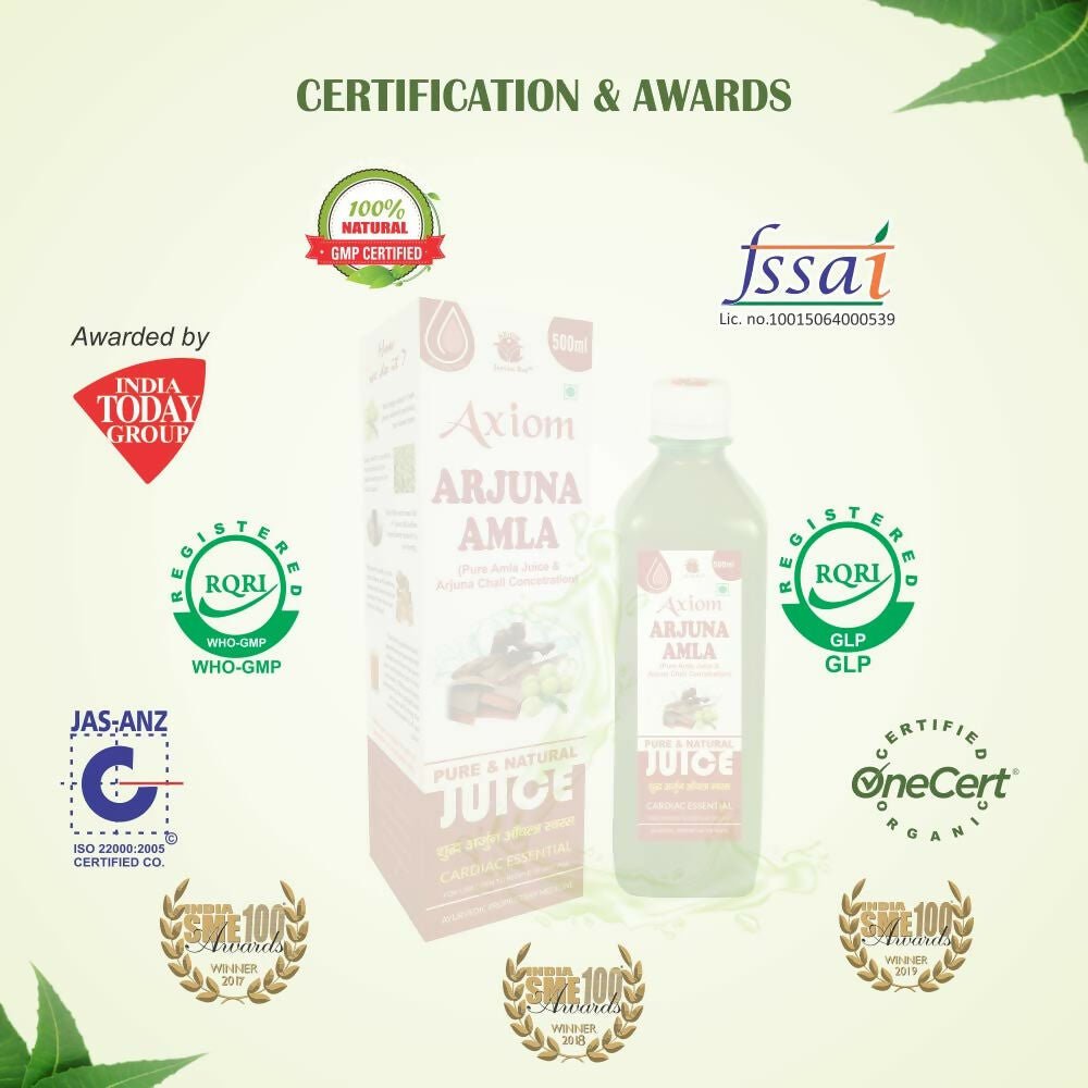 Axiom Arjuna Amla JuiceIngredients:Arjuna AmlaHow to use:As suggested by the expert. Legal Disclaimer: Statements regarding dietary supplements hav...