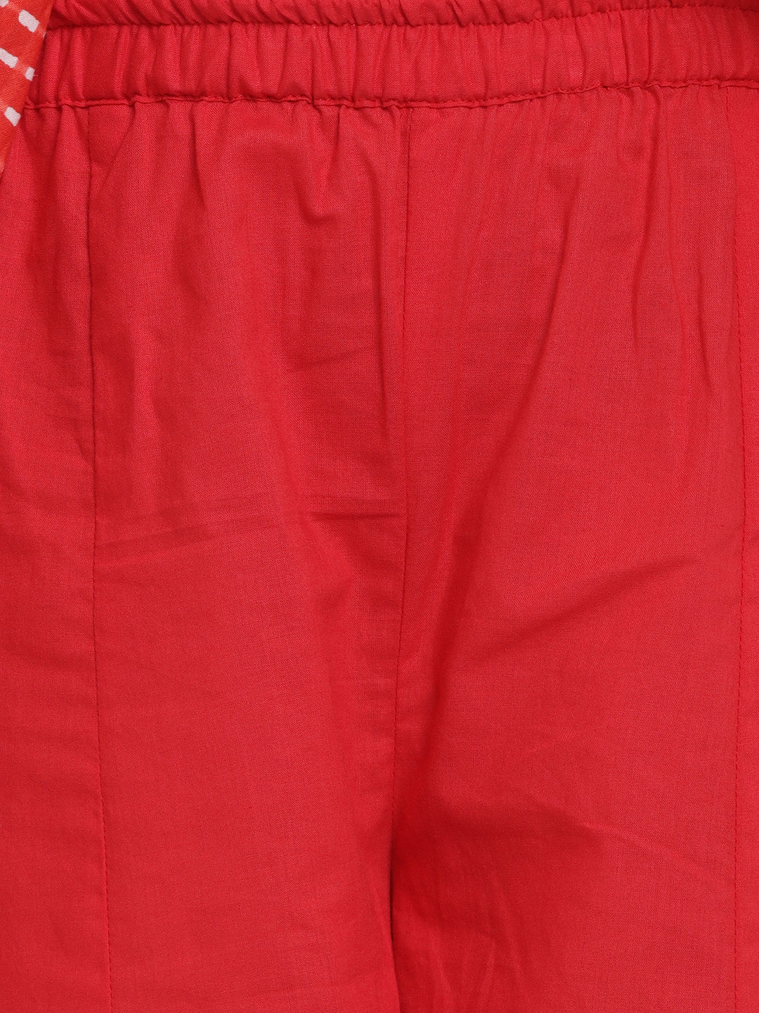 Red And Off-White Angrakha Kurta, Has A Round Neck, Three-Quarter Sleeves, Flared Hem Solid Red Palazzos