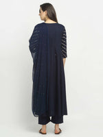 Rudra Bazaar Blue Angrakha Style Flared Kurta with Pyjamas & Dupatta