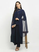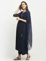 Rudra Bazaar Blue Angrakha Style Flared Kurta with Pyjamas & Dupatta - M