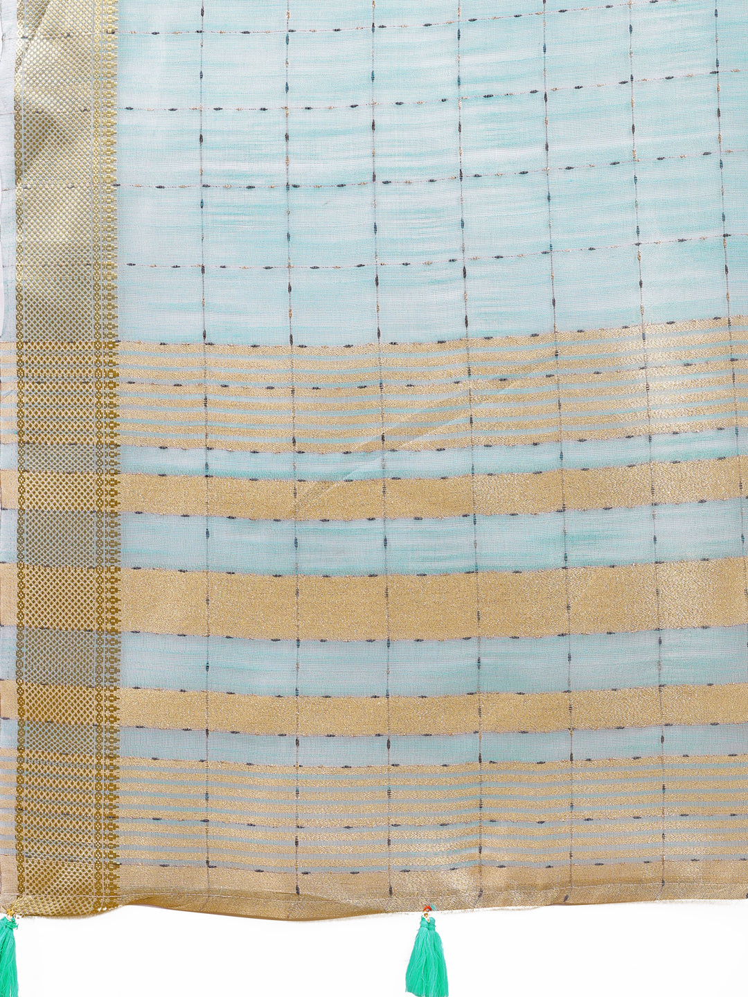 Astita Elegant Sky Blue Organza Saree with Golden Zari Border & Designer Tassels | Lightweight Partywear Saree - Distacart