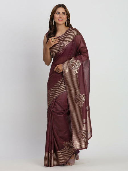Astita Linen Cotton Purple Saree - Free Size