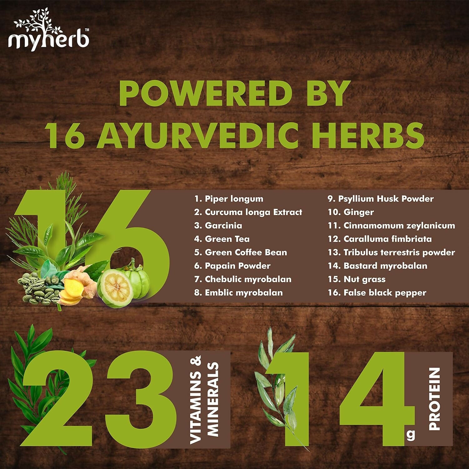 Myherb Slim Up Meal Replacement Shake With 16 Natural Herbal Blend For Men & Women - Strawberry Milk Shake - 500 gm