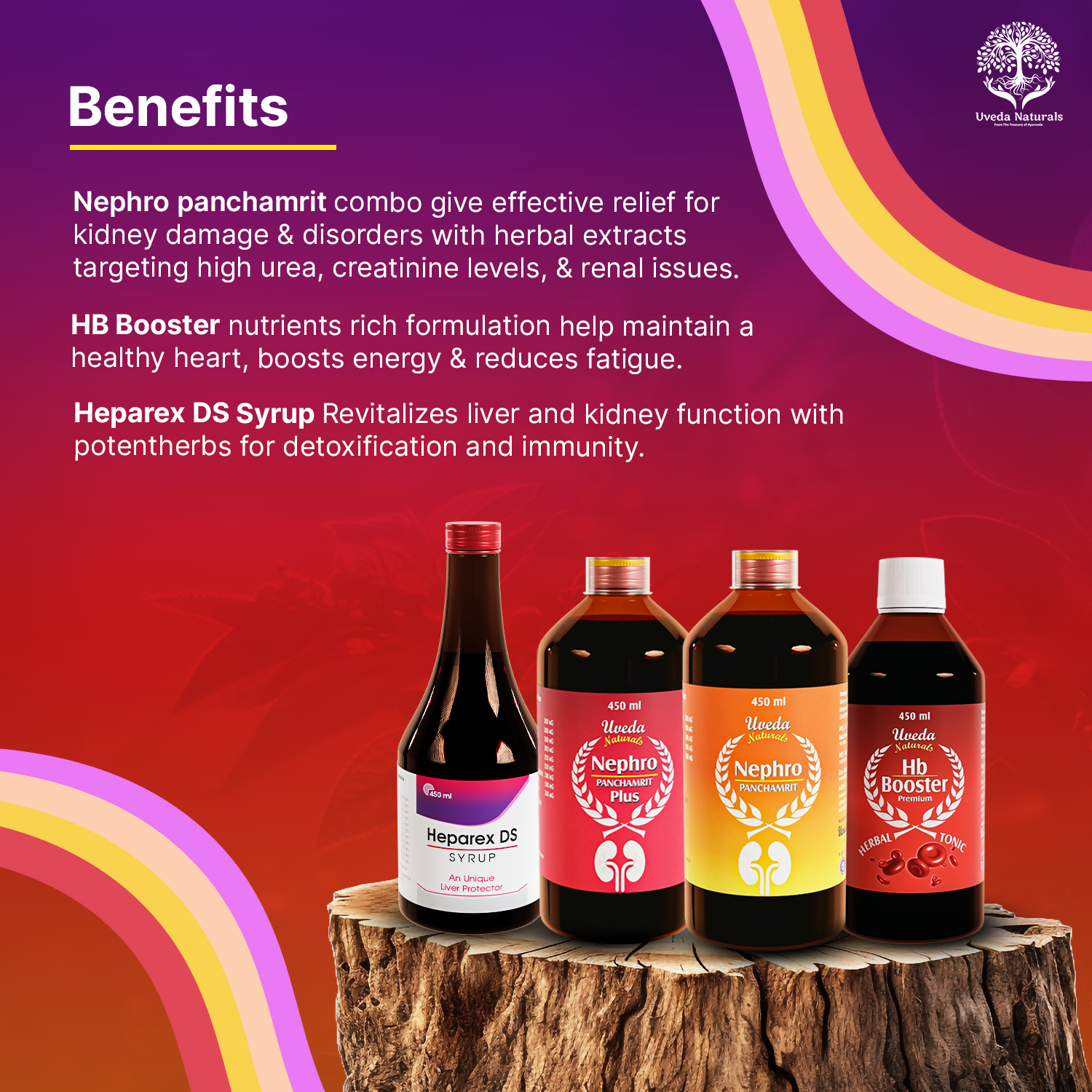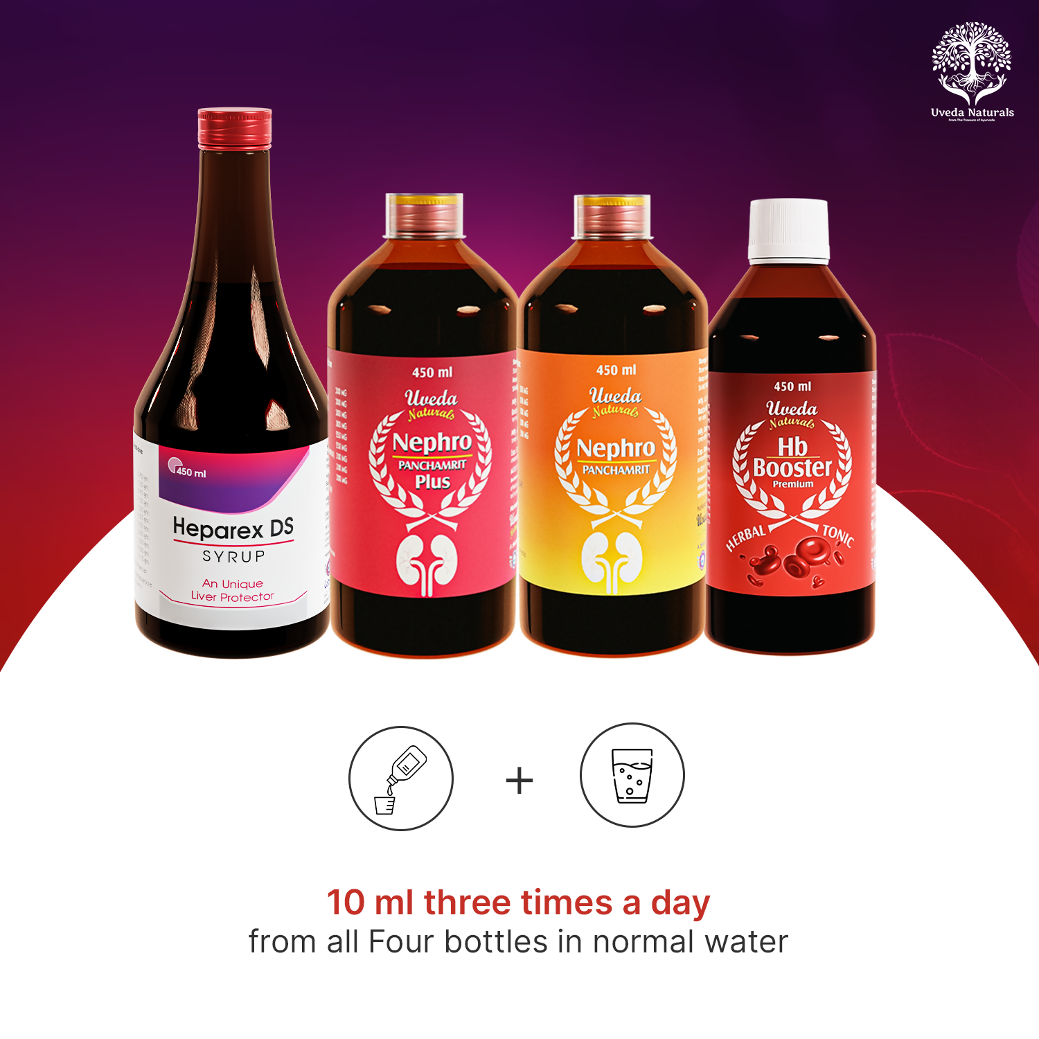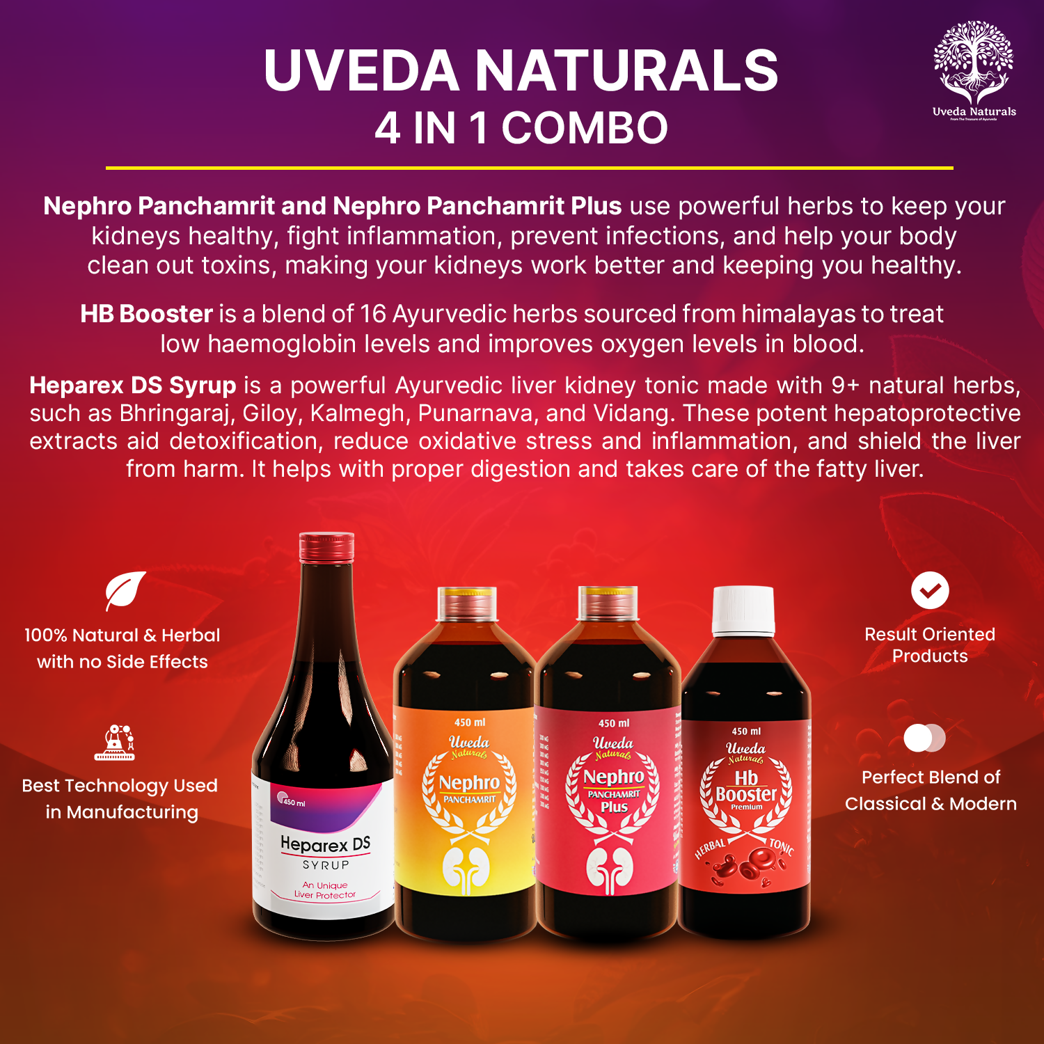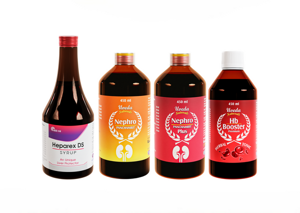 Uveda Naturals 4-in-1 Combo2 Months Set Combo Contains: 1. Uveda Naturals Heparex DS - 450 ml - 4 Quantity 2. Uveda Naturals Hb Booster - 450 ml - ...