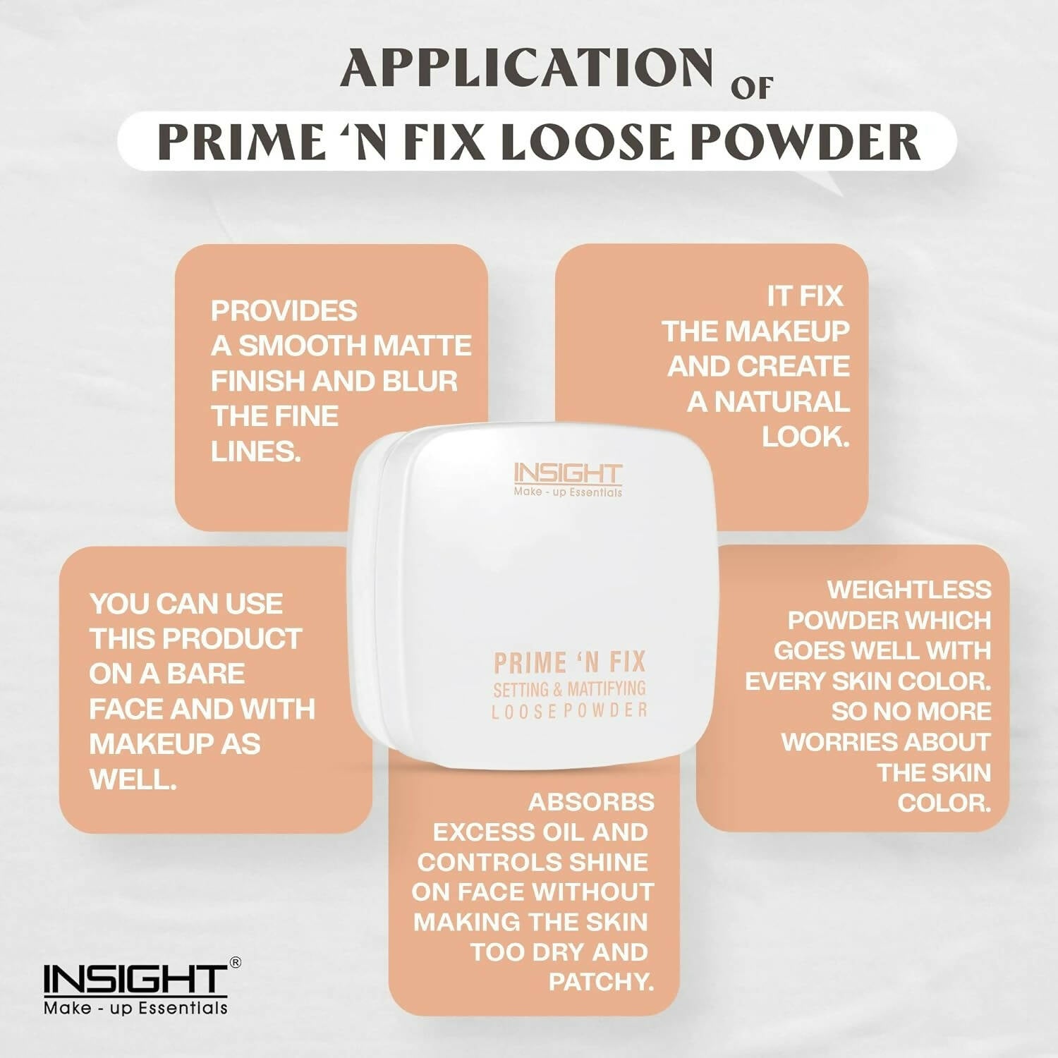 Insight Prime N Fix Setting Mattifying Loose Powder -TR203About the Product:Prime N Fix Setting Mattifying Powder with silky texture glides smoothl...