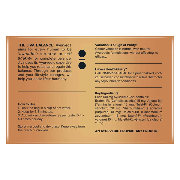 Jiva Ayurveda Ayurvedic ChaiAbout the Product:A natural blend of whole herbs infused for a healthy heart, brain and liver. It also helps improve me...
