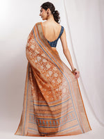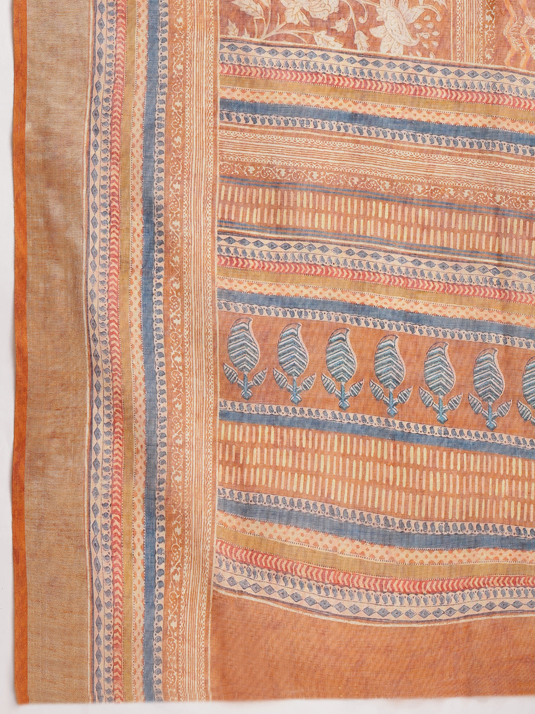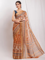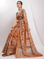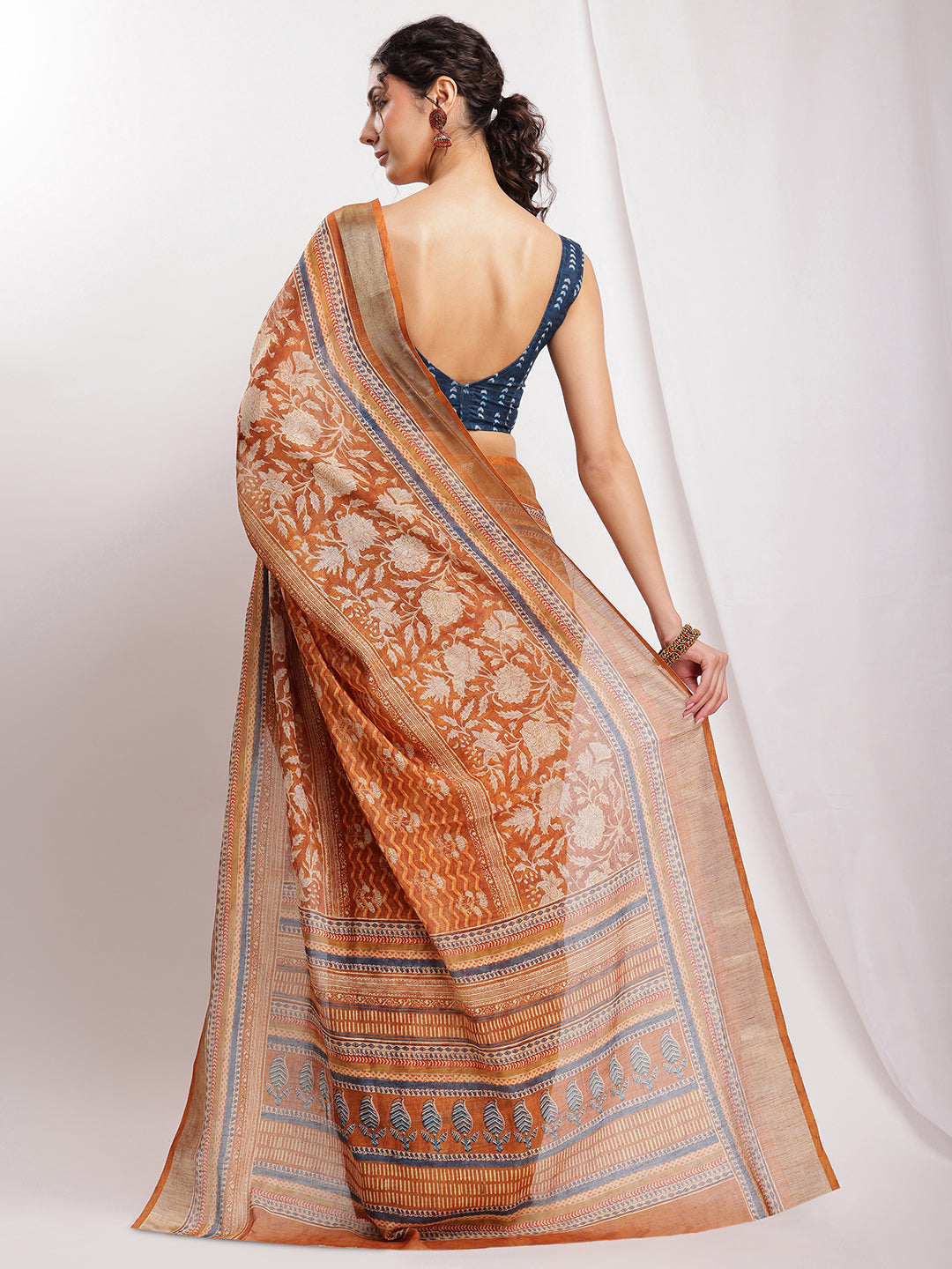 Janasya Brown Linen Blend Ethnic Motifs Printed Saree