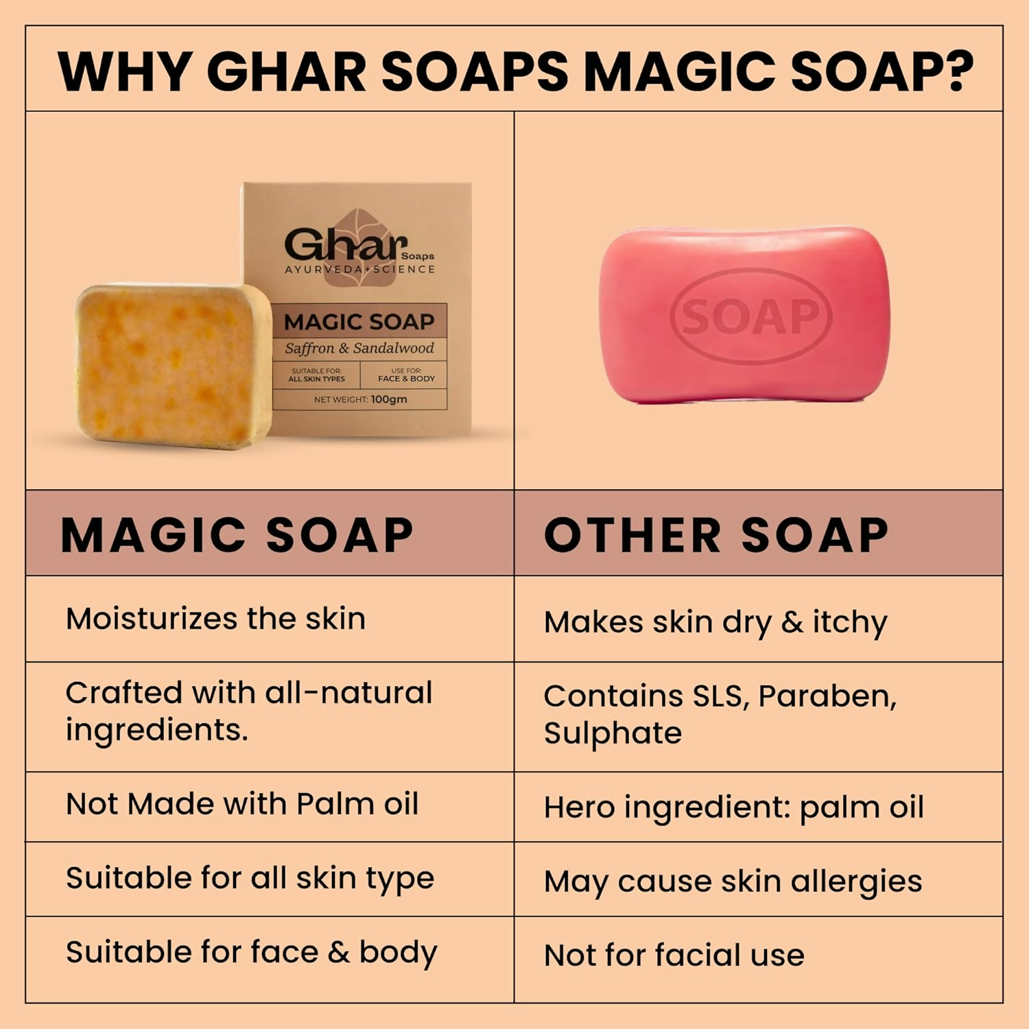 Ghar Soaps Sandalwood & Saffron Magic Soaps For Bath: Ghar Soaps are formulated without parabens, sulphates, or animal testing. Created with co...