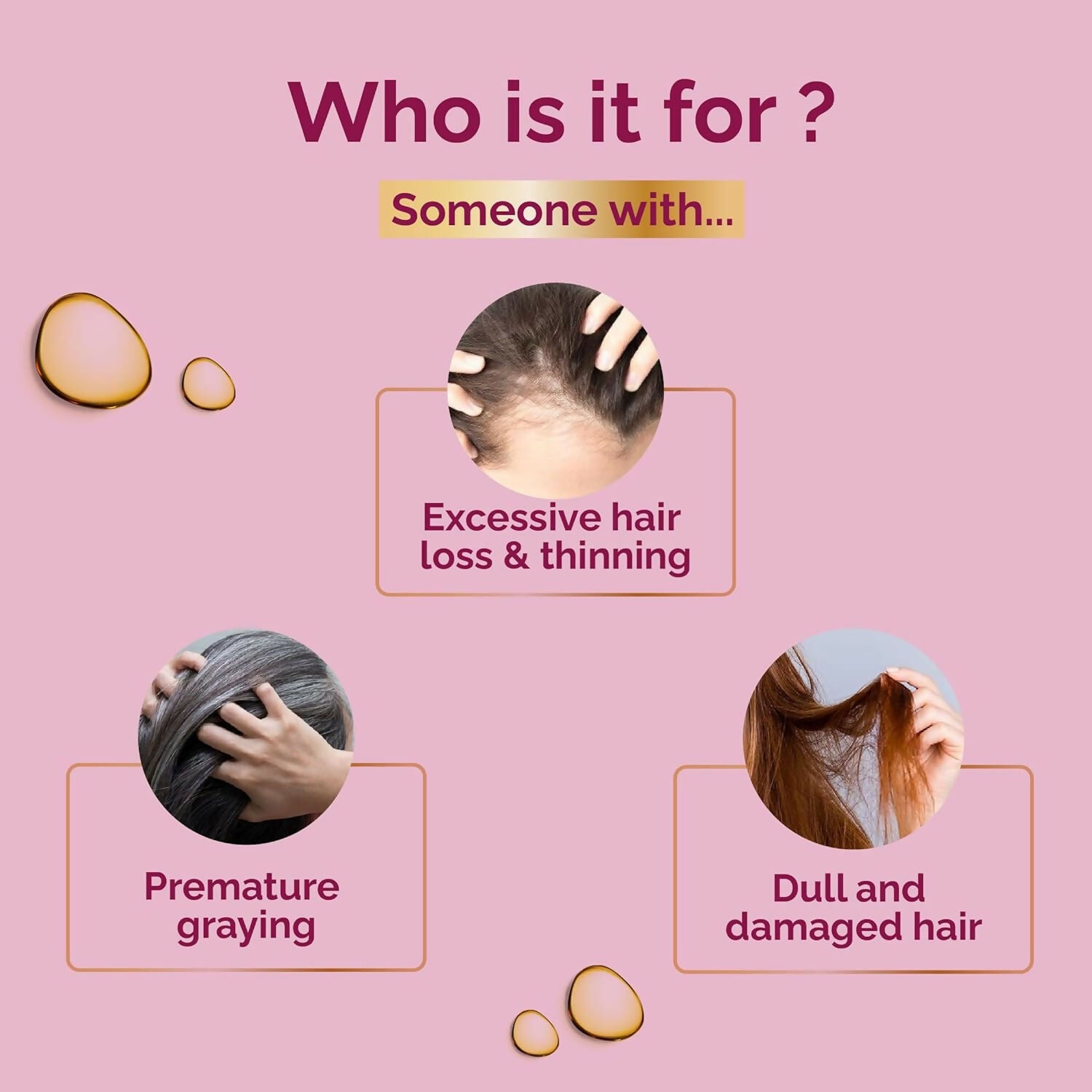 • Delays Premature Greying: Embrace your natural hair color for longer with this oil that helps delay the appearance of grey strands.