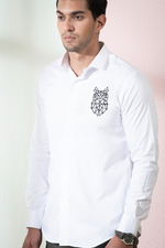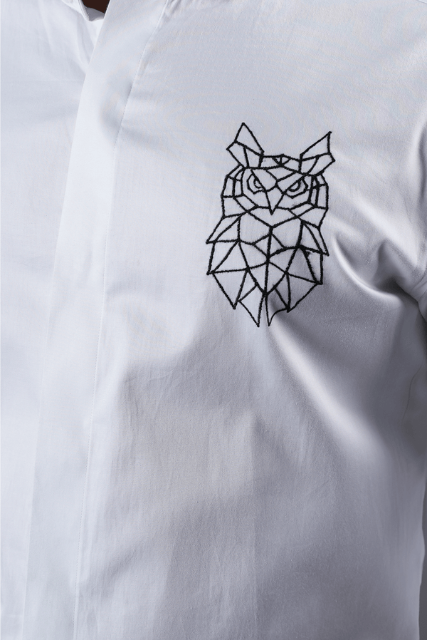 Introducing our men's white shirt with owl embroidery on the chest - a stylish and unique addition to any wardrobe. Made from high-quality cotton satin, this shirt is soft and comfortable to wear all day long. The embroidered owl adds a touch of character and personality to the shirt, making it perfect for those who want to stand out from the crowd. Whether you're wearing it to the office or a casual outing, this shirt is sure to make a statement. Plus, its versatile white color allows you to pair it with any pants or accessory. Don't miss out on this one-of-a-kind shirt - add it to your collection today.