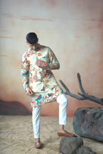 Serenity Bird Themed Print Cotton Nehrujacket Set by Hilo Design