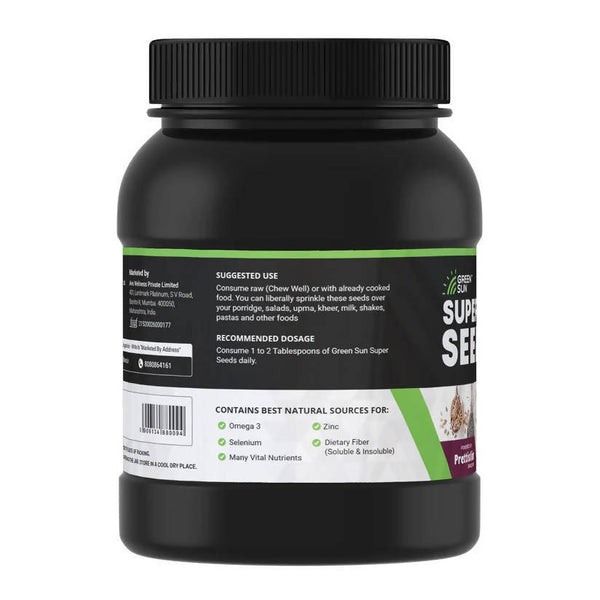 Green Sun Super Seeds score high in Flavour with crunchiness and Tasty flavour in Low carb form. Perfect to have as Tasty, Sweet, Healthy Munching option.Super Seeds brings a healthy twist to your every food.Green Sun super seeds is a blend of 7 most effective & quality seeds gifted from mother nature. The mixture of Flax, Sunflower, Pumpkin, Black Sesame, White Sesame & Watermelon & makes just the perfect blend with enriching agents.