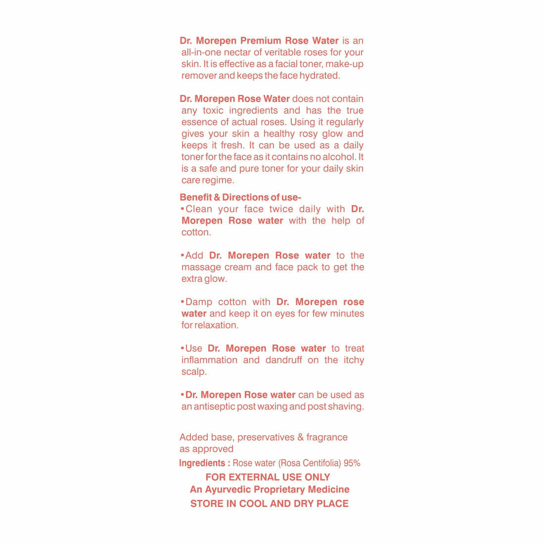 Dr. Morepen Pure & Natural Rose Water Spray About the Product: Dr. Morepen Rose water is an all-in-one nectar of veritable roses for your skin...