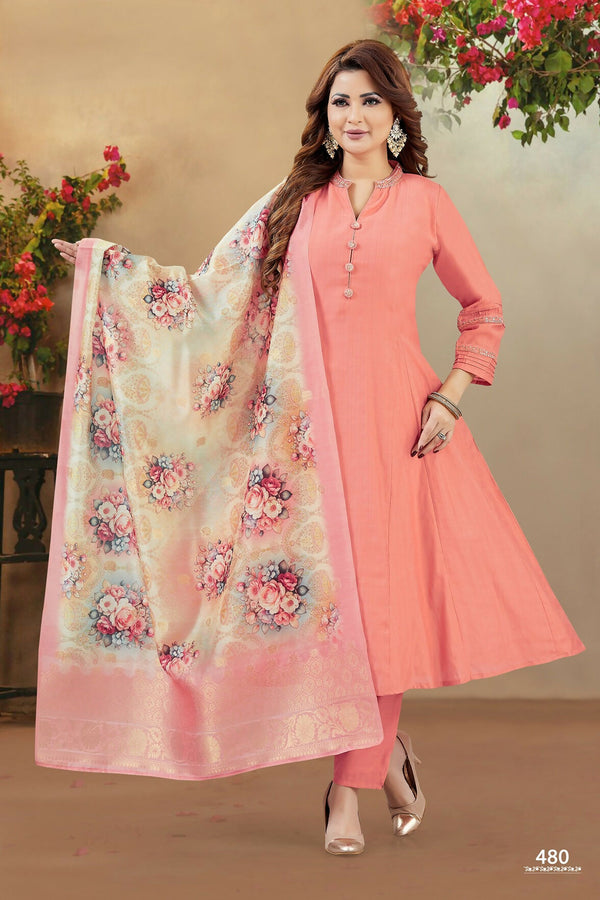 Joban Fashion Women Soft Silk Peach Round Neck Emroidery Kurta Set - 36