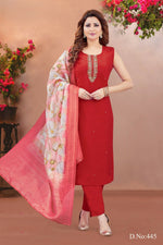 Joban Fashion Women Soft Silk Red Round Neck Emroidery Kurta Set - 36