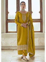 Myra Mustard Yellow Premium Silk Embroidered Pant Style Suit