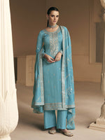 Myra Sky Blue Premium Silk Embroidered Pant Style Suit