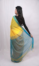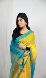 A fresh and vibrant addition to your wardrobes! This saree is crafted in Cotton Handspun that features beautiful shades that will give you zesty vibes! Style this up with minimal jewelry for a fab look!