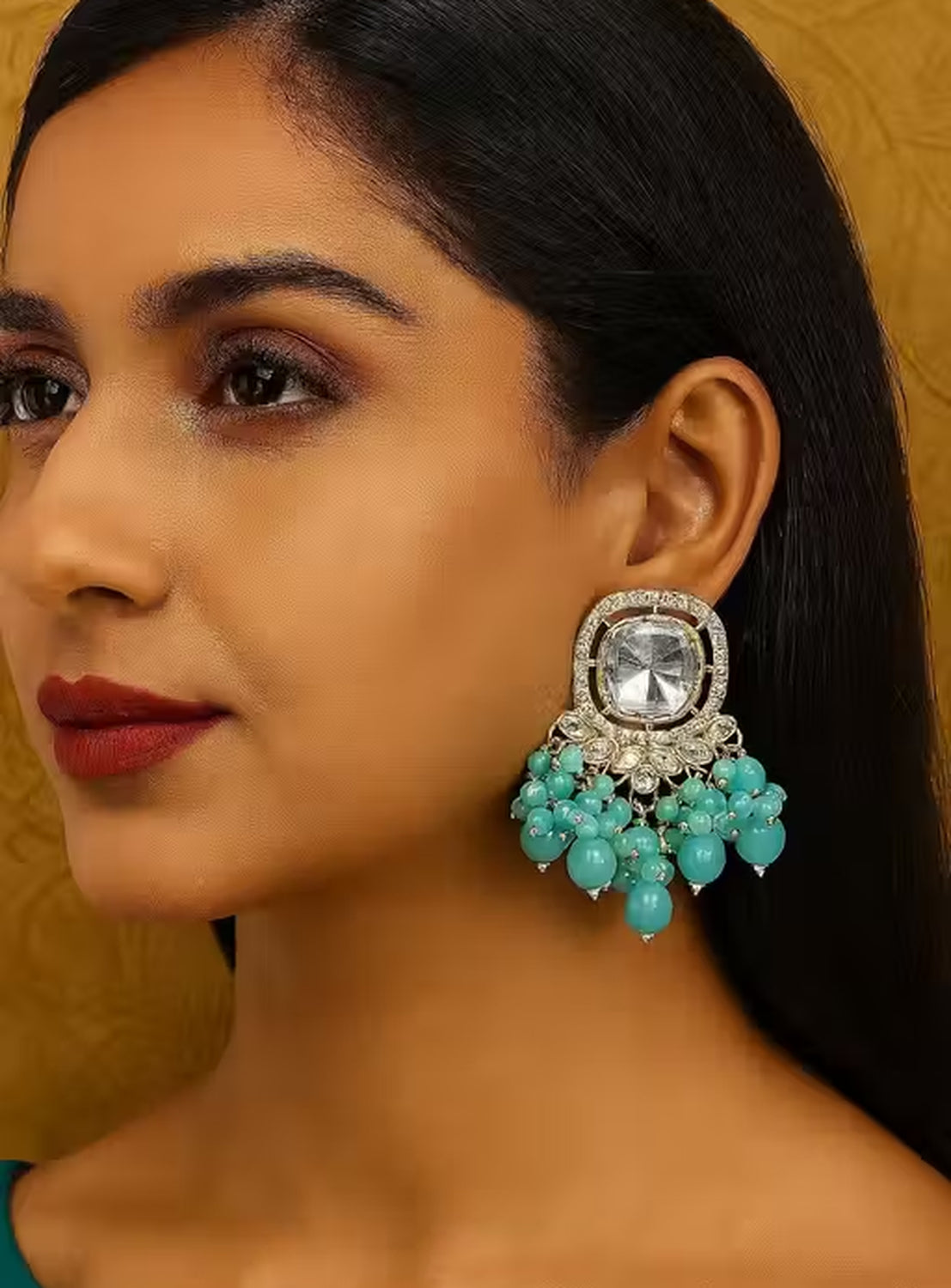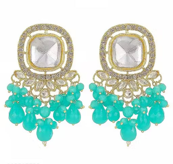 Jewel City Traditional Gold-Plated Kundan Earrings with Blue Beads – Handcrafted Ethnic Dangler Jewelry – Wedding & Party Wear Color: Mint Ma...