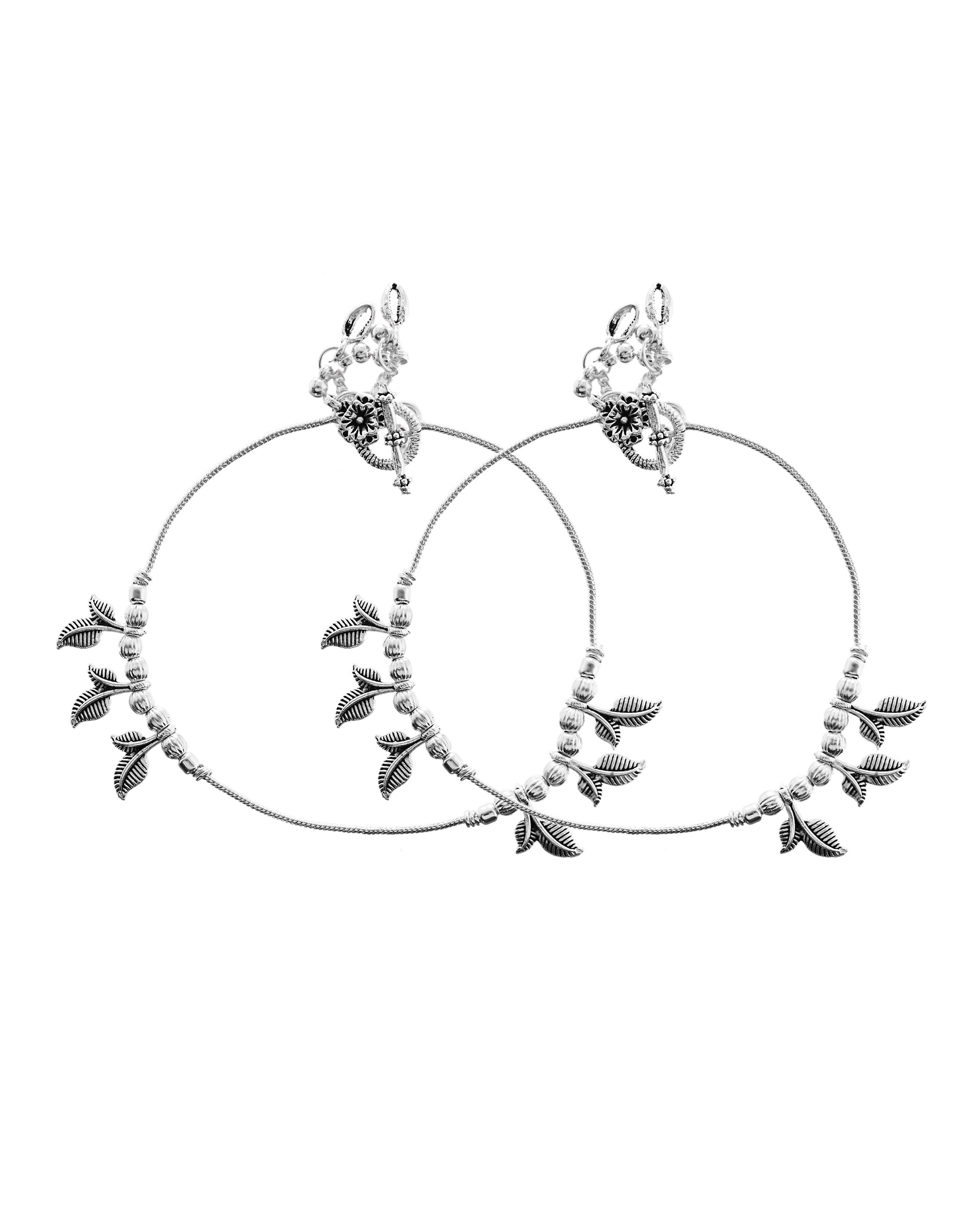 Set of 2 silver-toned leaf-designed handcrafted anklets, featuring intricate detailing and elegant floral-inspired motifs. Perfect for adding a delicate, stylish touch to any outfit, these anklets are lightweight, durable, and versatile. Ideal for casual wear, festive occasions, or gifting, they make a charming addition to your jewelry collection.Legal Disclaimer :Product color may slightly vary due to photographic lighting sources or your monitor settings.