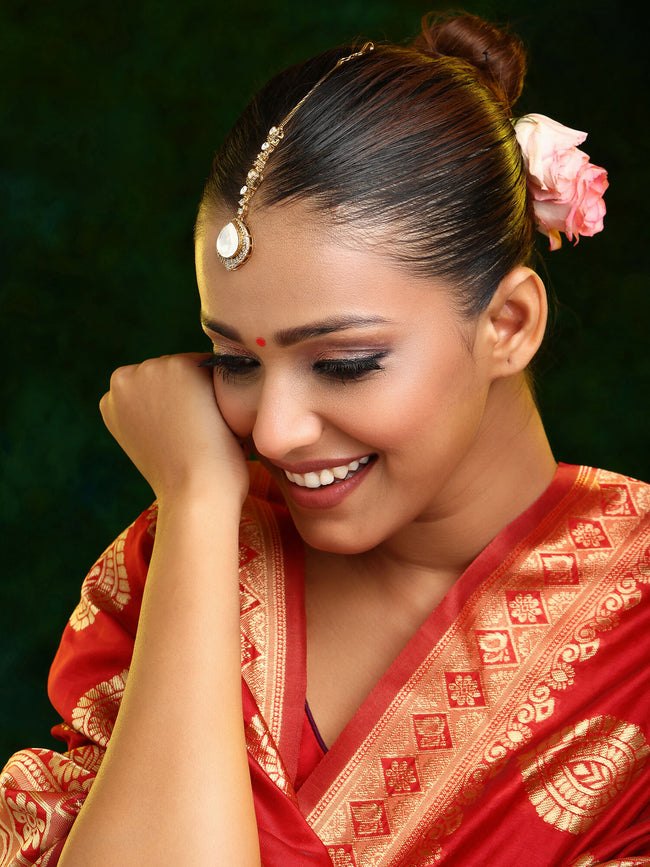 A Maang Tikka is a classic Indian headpiece. Resting gently on the forehead, it brightens your face in an instant. Yet, it serves more than a cosmetic purpose.