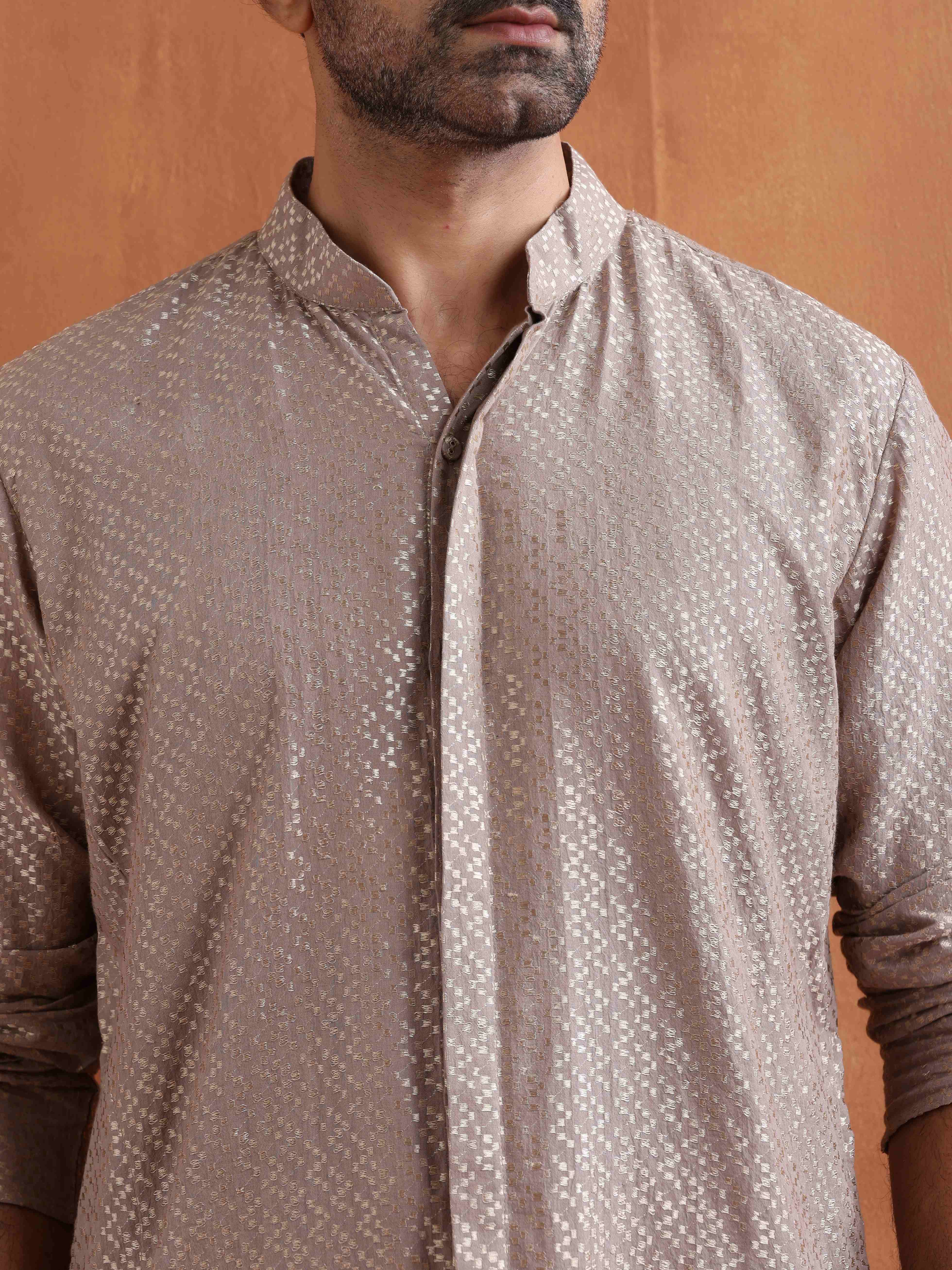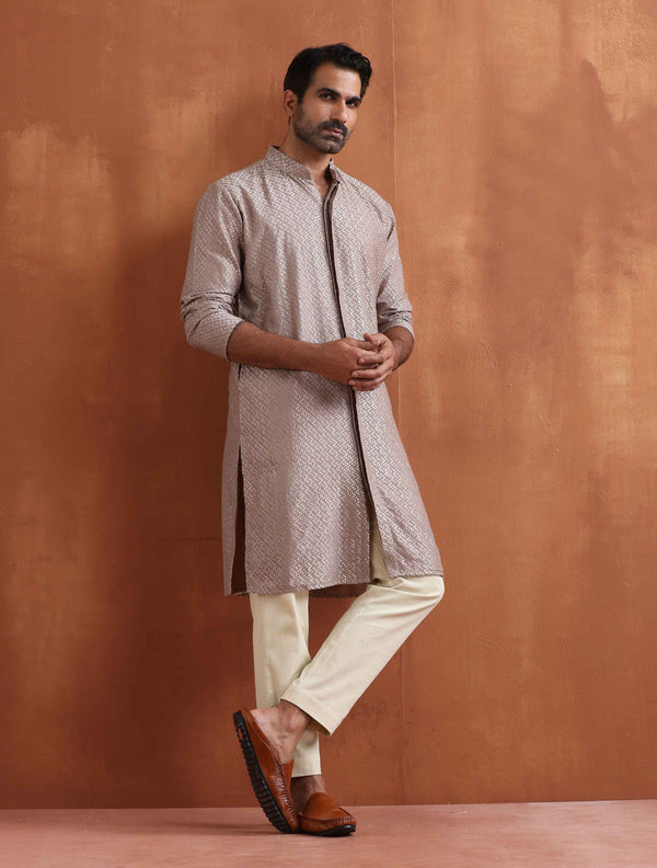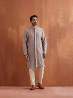 trueBrowns Men's Beige Cotton Dobby Kurta