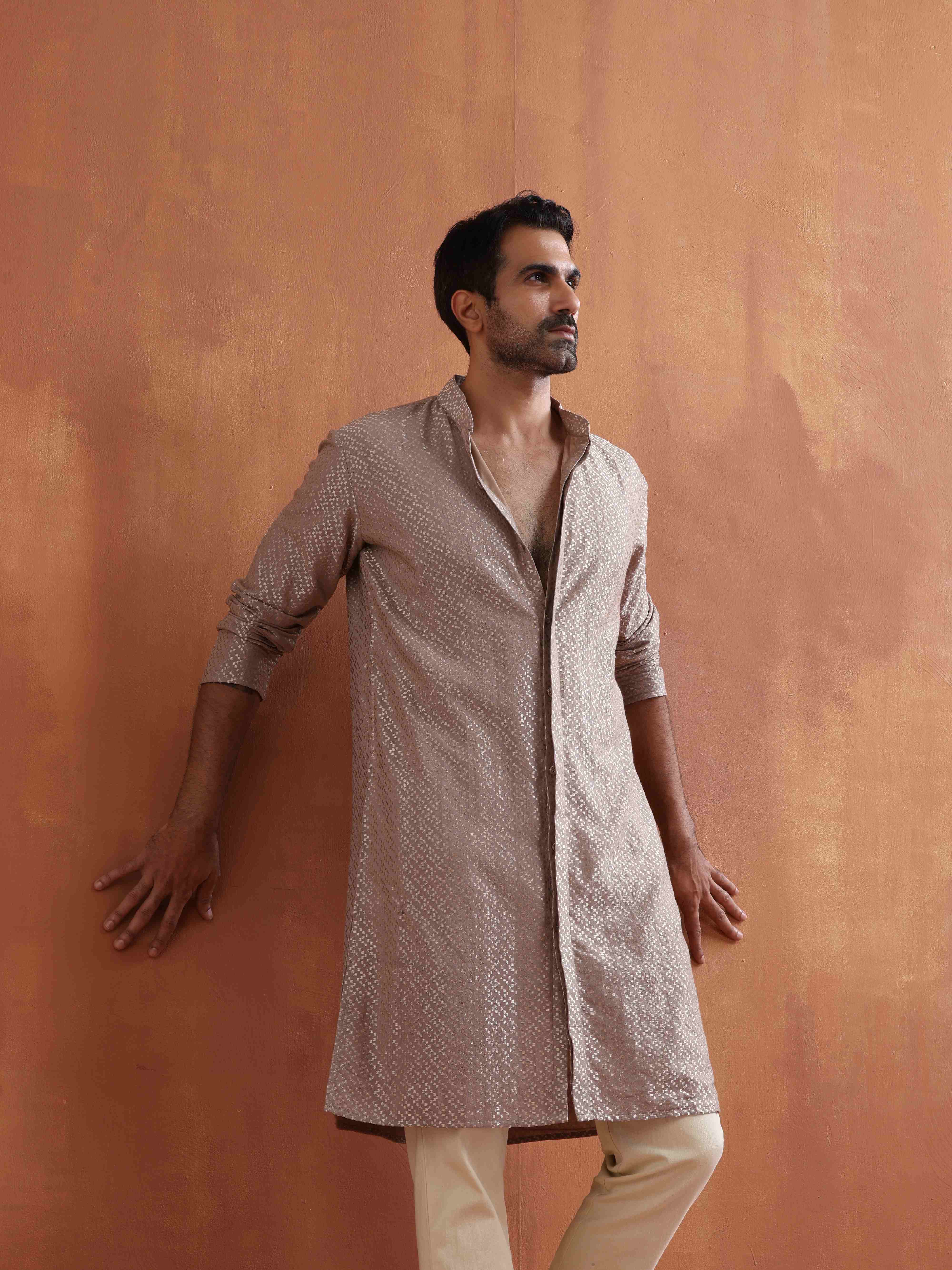 • Upgrade your festive wardrobe with this beige cotton dobby kurta.