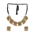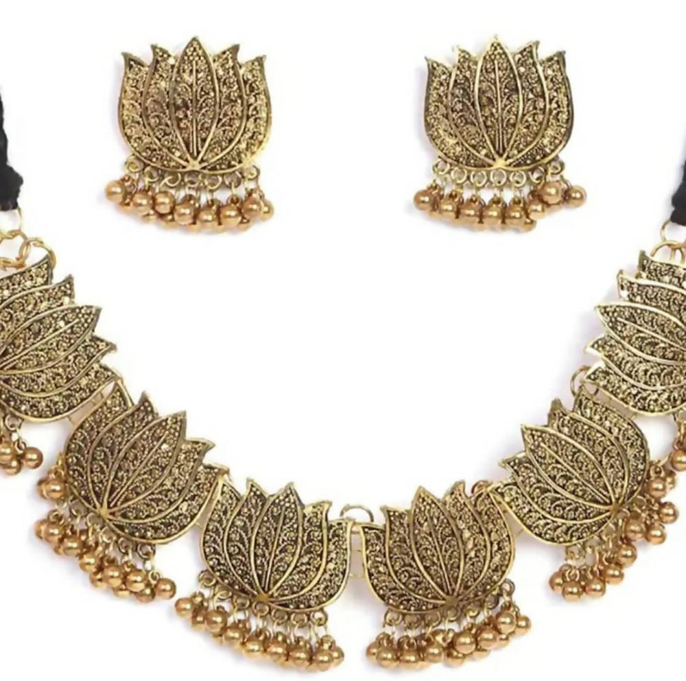 Mominos Fashion Oxidised Lotus Design Golden Color Necklace Choker Set