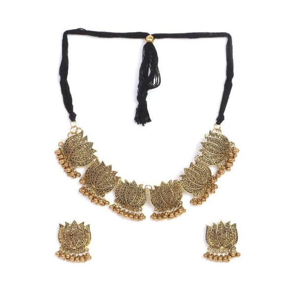 Mominos Fashion Oxidised Lotus Design Golden Color Necklace Choker Set - Choker Necklace Set