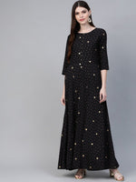 • Black, pink and golden bandhani khari printed anarkali ankle length kurta with beads detail, has a round neck, three-quarter sleeves, flared hem, high front slit