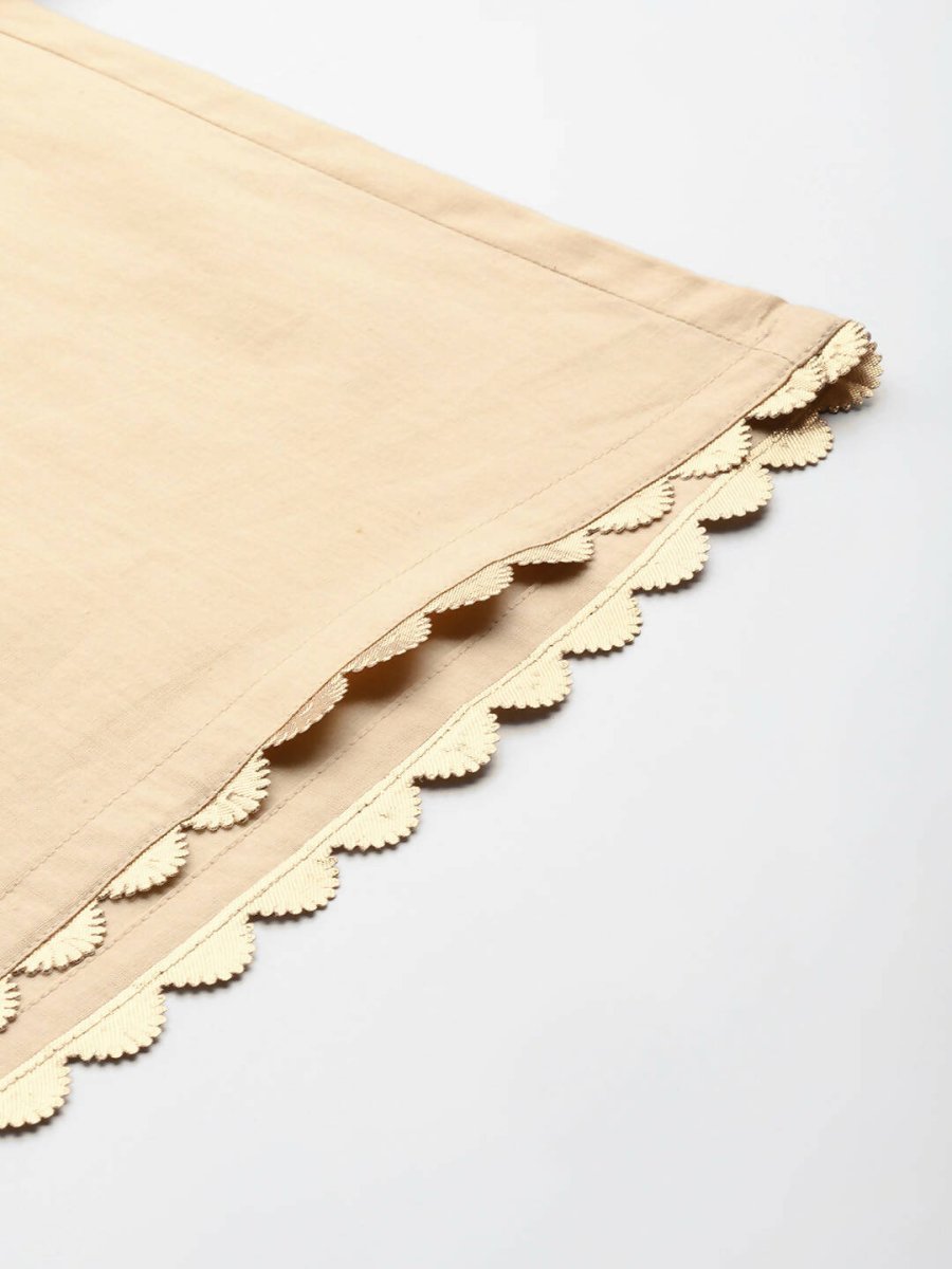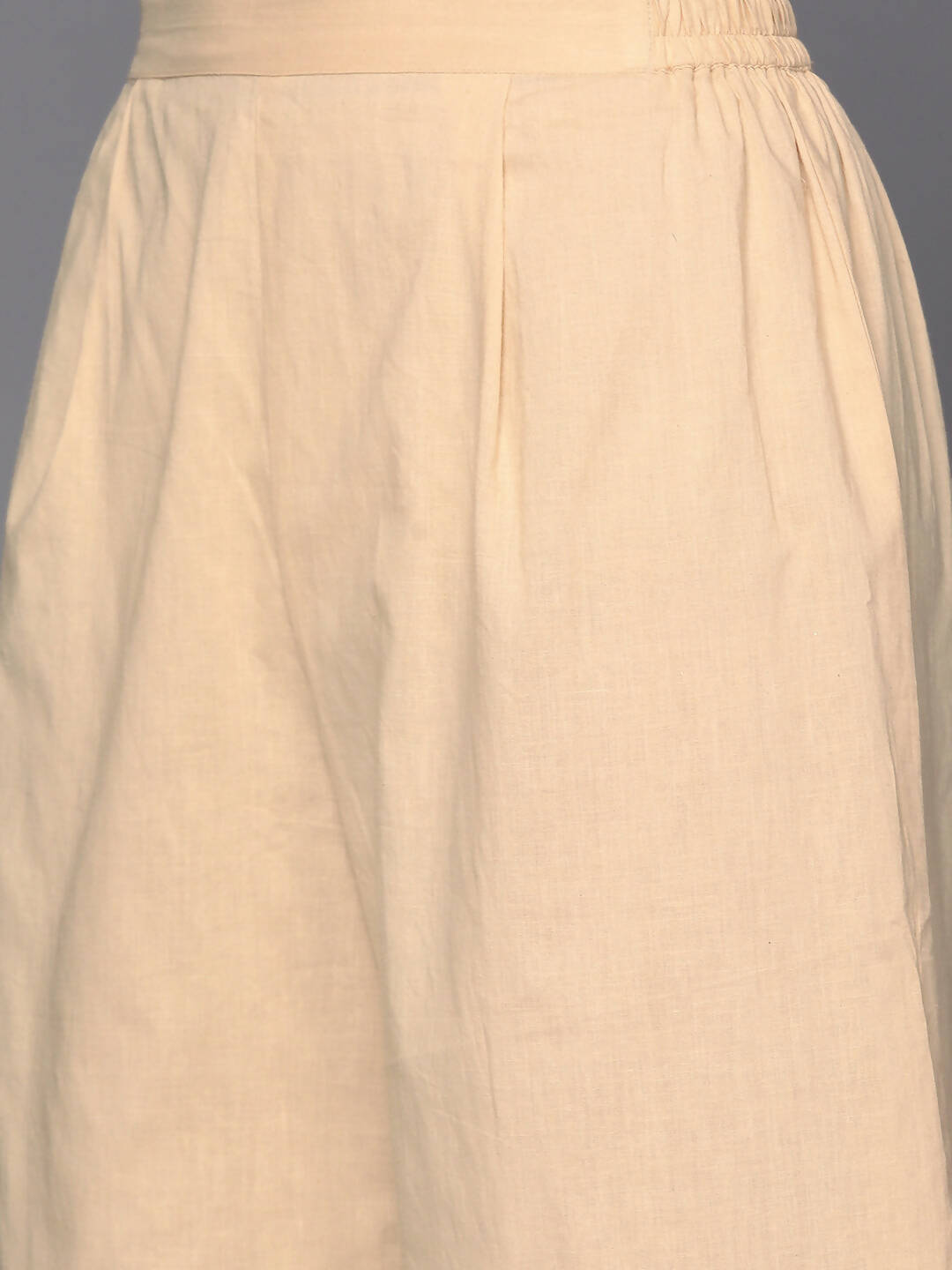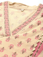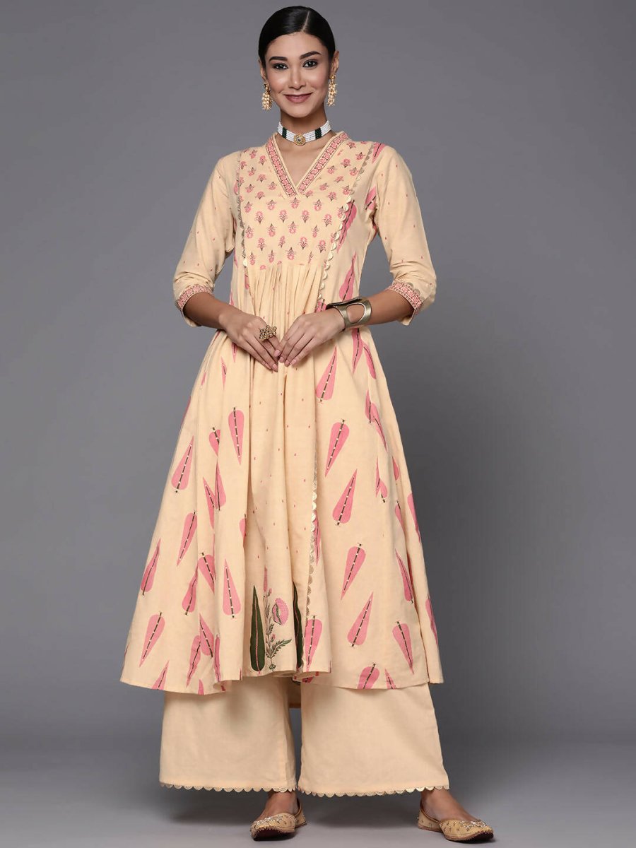 Ahalyaa Women Cream-Coloured & Pink Floral Print Pure Cotton Anarkali Kurta with Palazzos