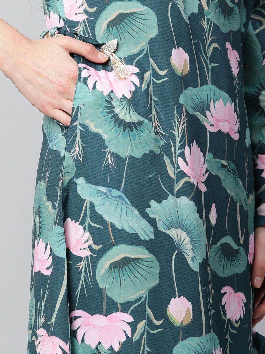 Ahalyaa Women Green Crepe Floral Printed Kurta with Palazzo Set