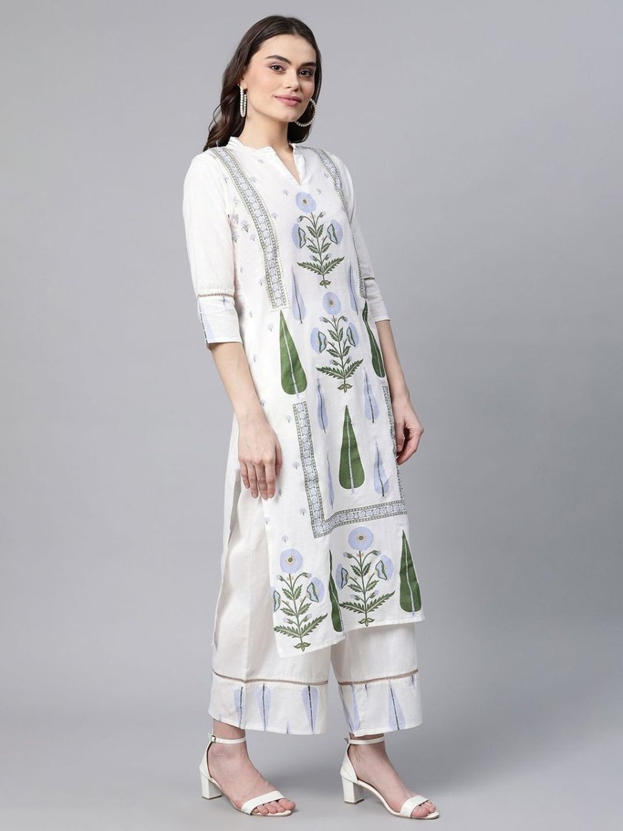 Ahalyaa Women Off White Colour Pure Cotton Printed Kurta Palazzo Set With DupattaThis clothing set consists of kurta palazzo set with dupatta.kurta...