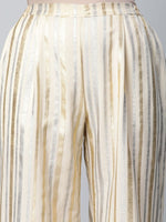 Crepe Gold Printed Palazzo, Striped Pattern, Partially elasticated waistband, Slip-on closure"