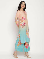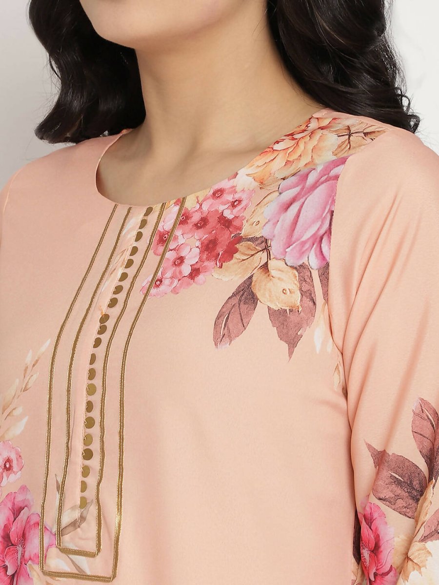 Ahalyaa Women Peach-Coloured Floral Printed Kurta Palazzo Set With Dupatta