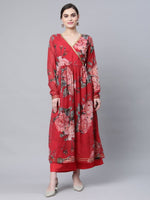 Ahalyaa Women Red Georgette Digital Floral Printed Kurta Palazzo Set