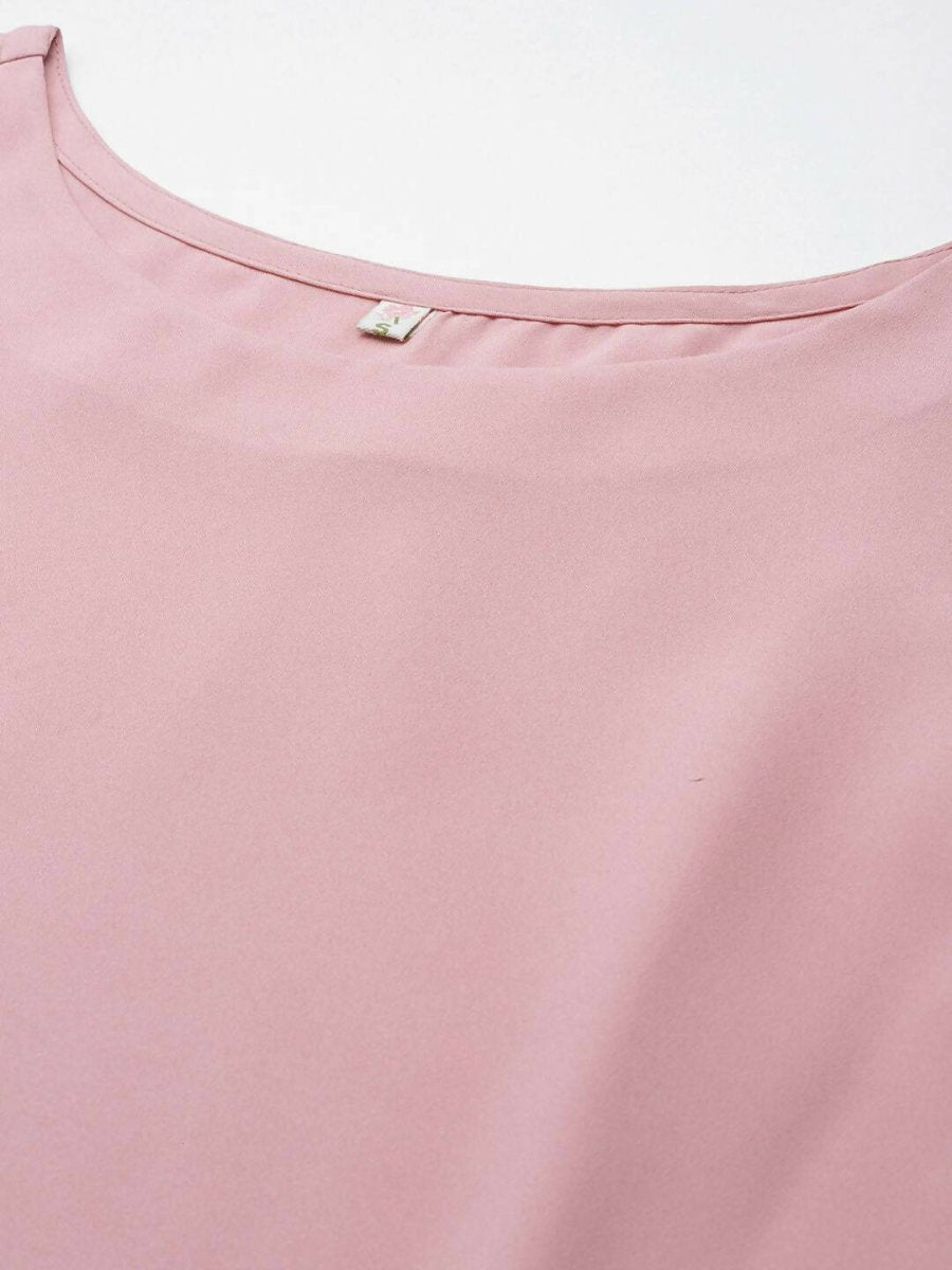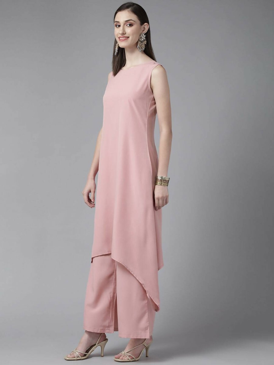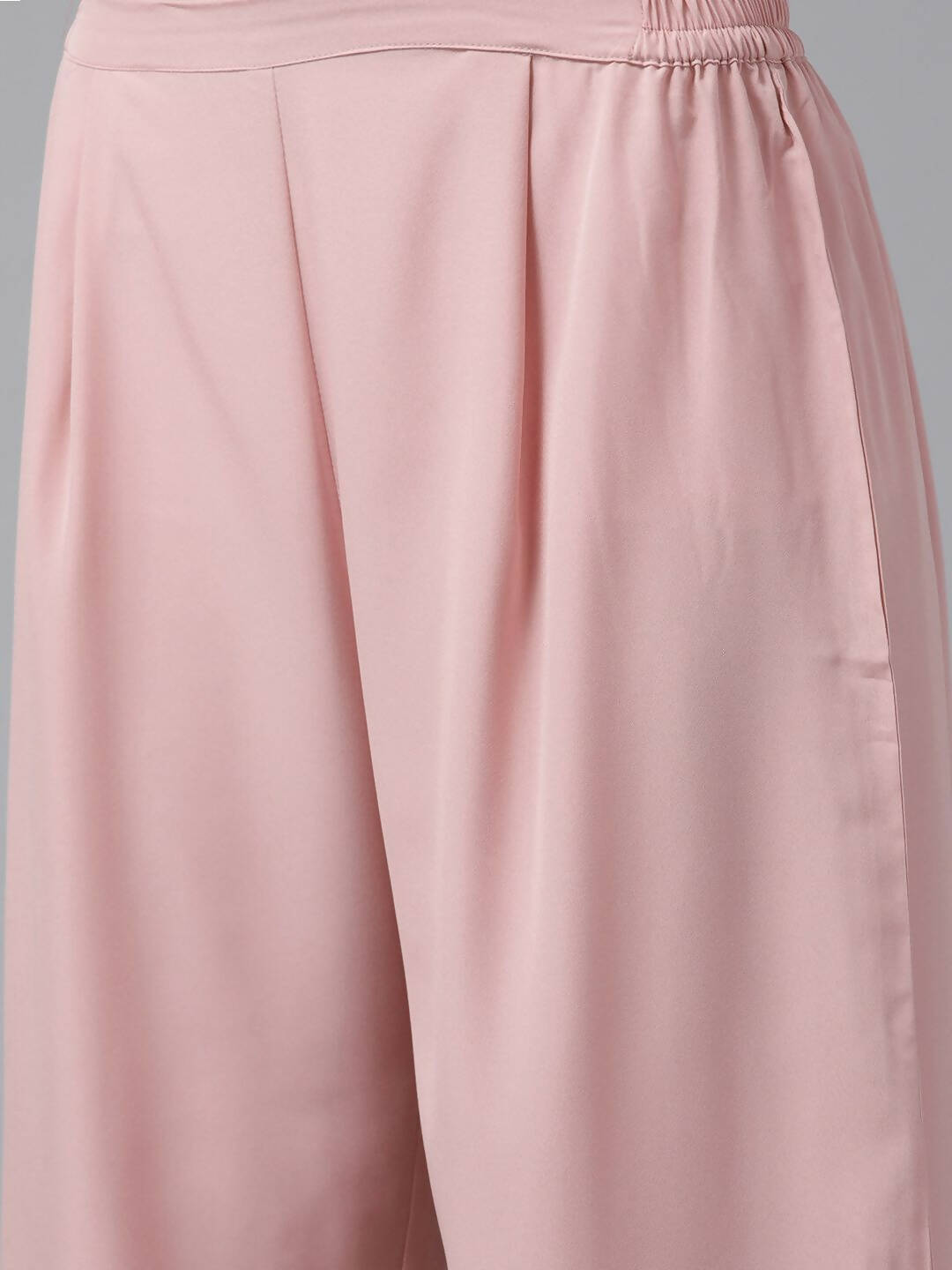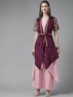 Ahalyaa Women Rose Pink Crepe Kurta Palazzos Set With Burgundy Jacket