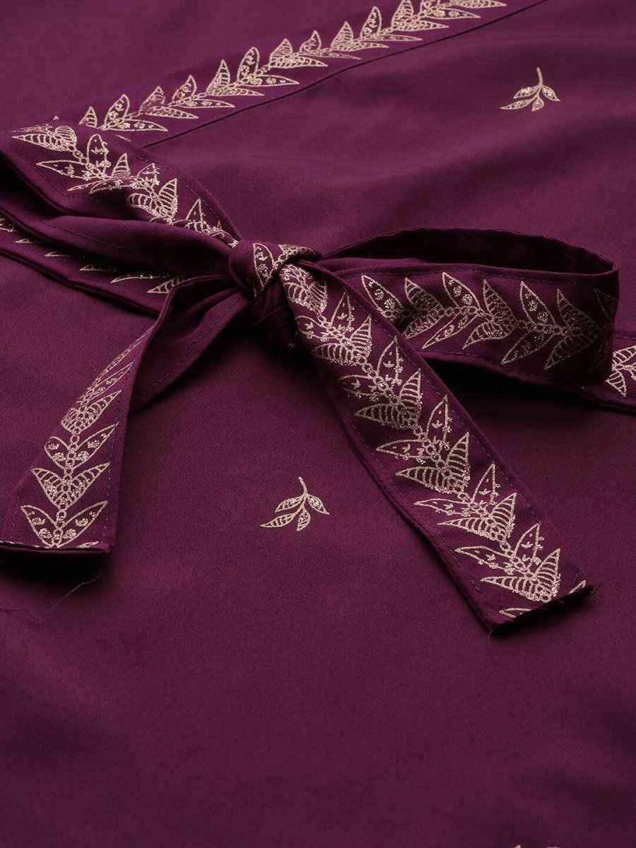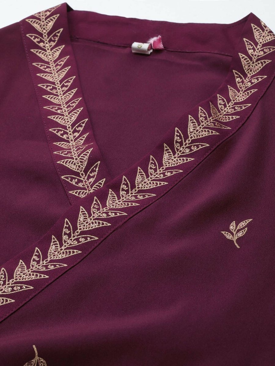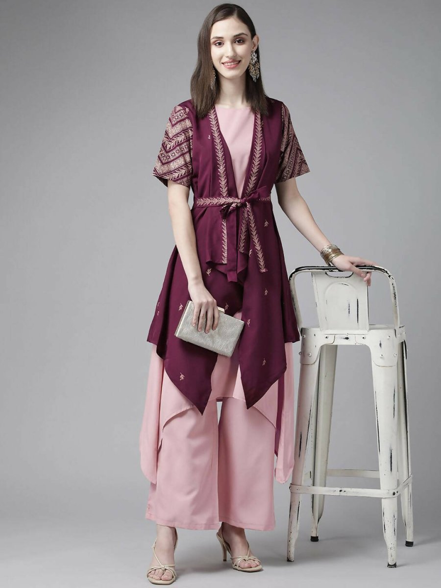 Ahalyaa Women Rose Pink Crepe Kurta Palazzos Set With Burgundy Jacket - S