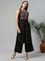 Ahalyaa Womens Black Crepe Printed Kurta Palazzo Set