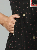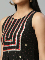 Ahalyaa Womens Black Crepe Printed Kurta Palazzo Set - S