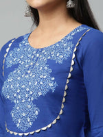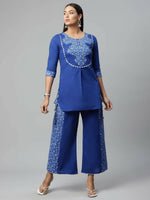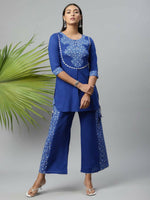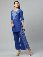 Ahalyaa Womens Royal Blue Pure Cotton Printed Tunic Palazzo Set