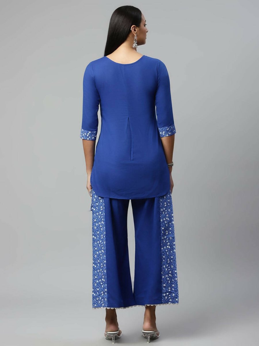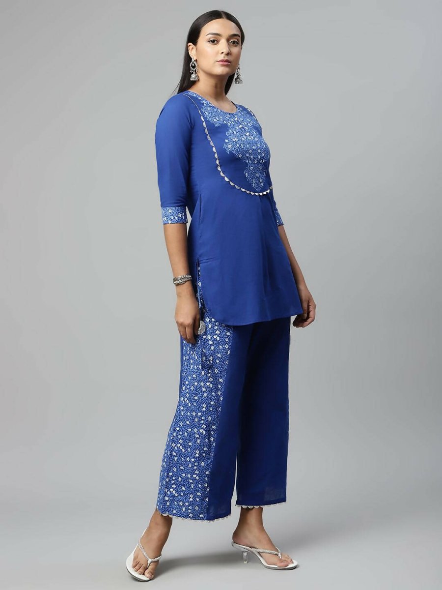 Ahalyaa Womens Royal Blue Pure Cotton Printed Tunic Palazzo Set - S