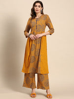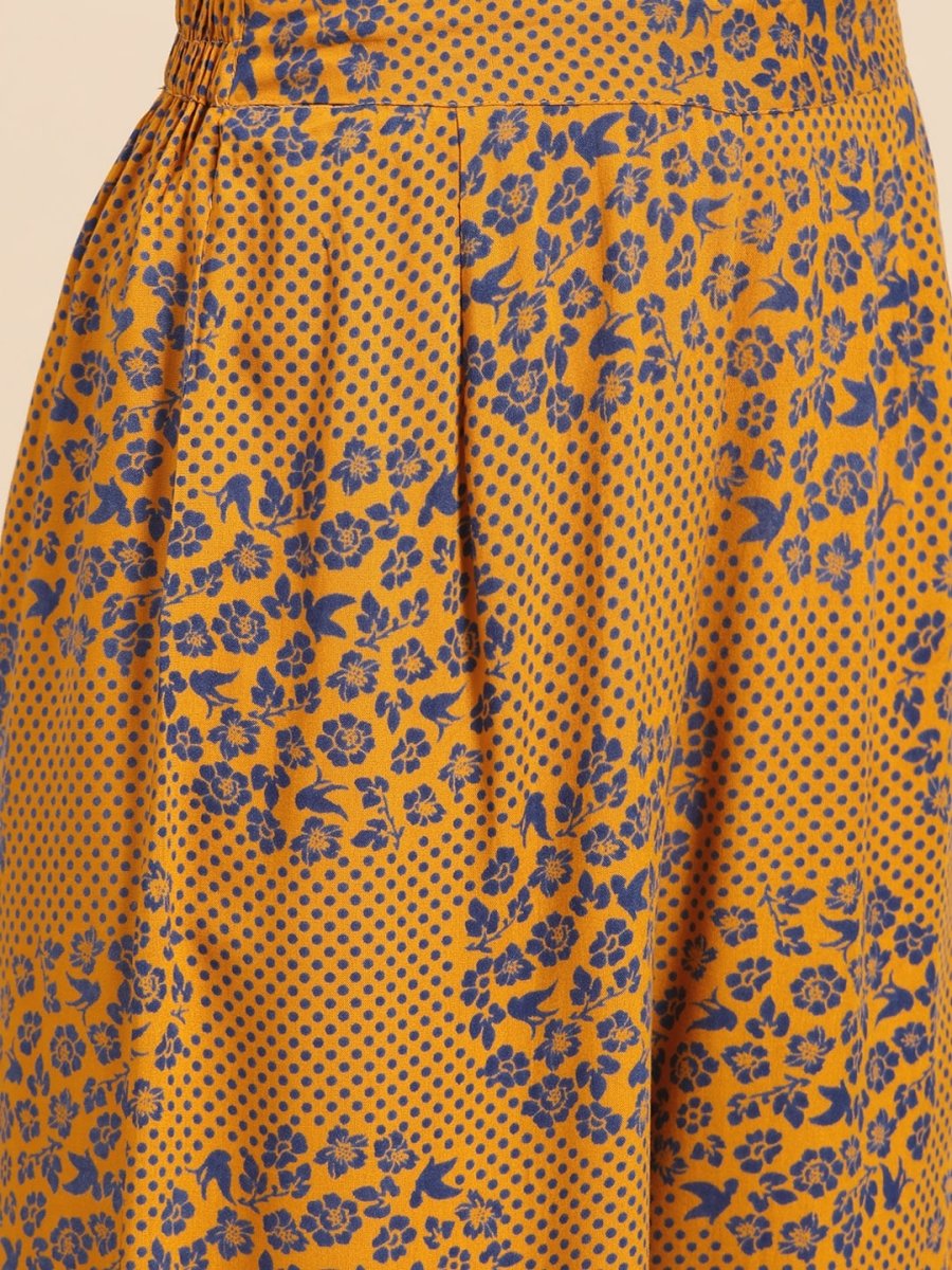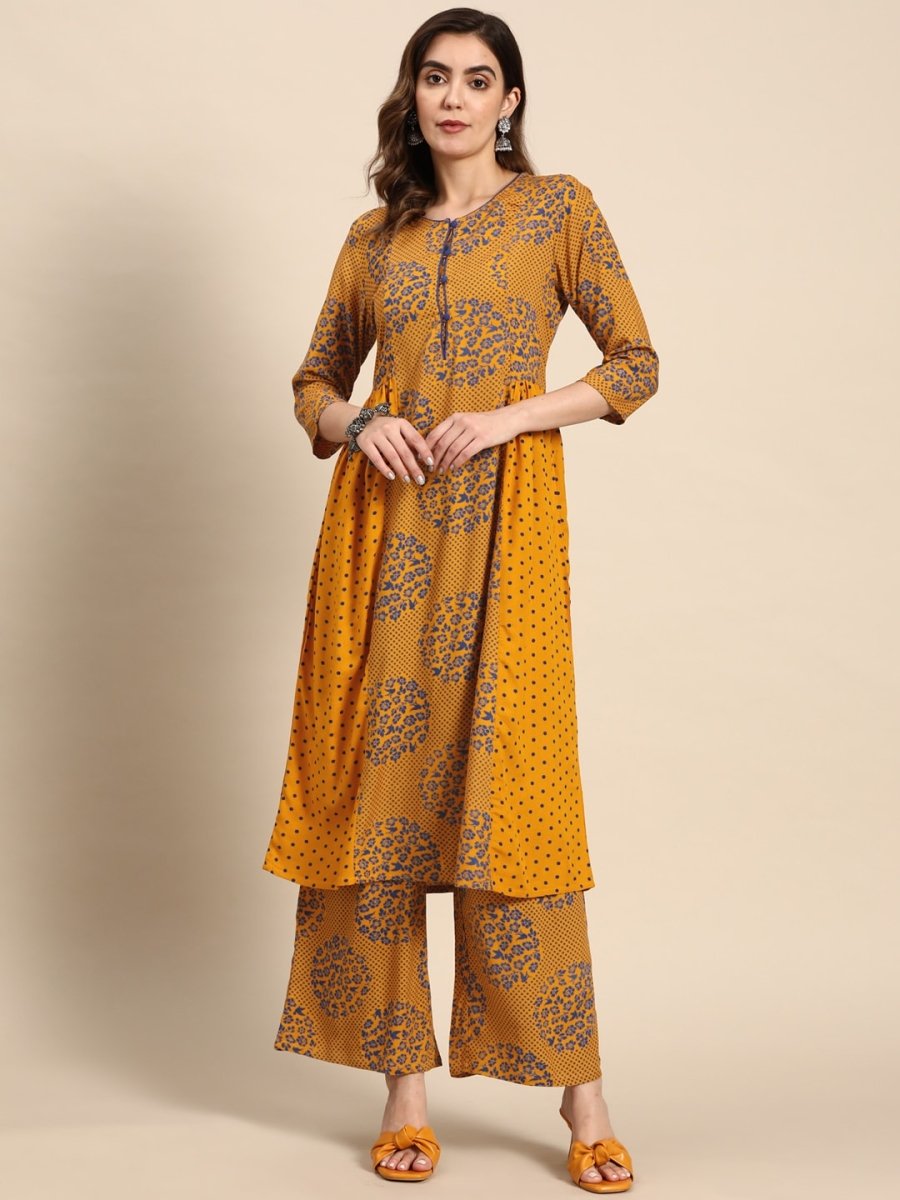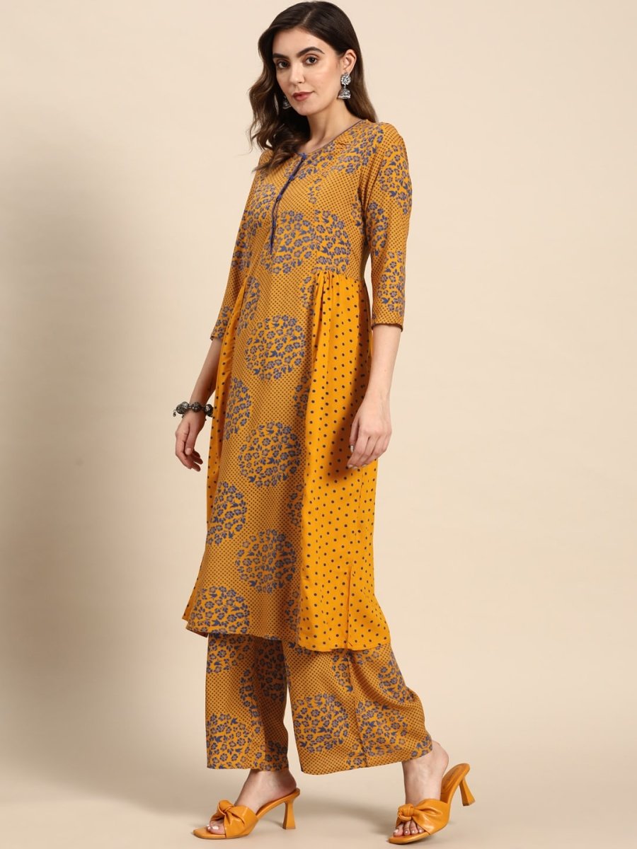 All About You Women Printed Regular Kurta with Palazzos Product Details Mustard yellow and blue printed Kurta with PalazzosKurta design: Abstr...
