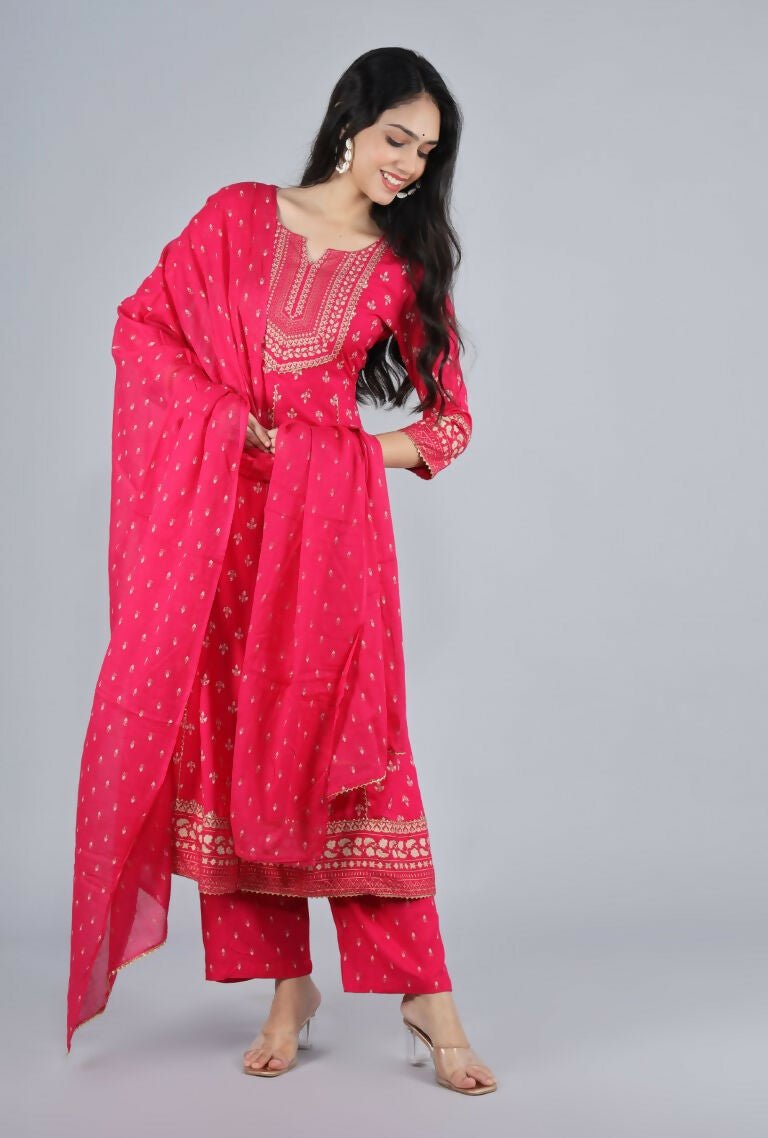 Alvano Alvano Beautiful Printed Kurti with Palazzo and Dupatta for women's and Girls (Pink)Good quality product, it is made with good quality mater...