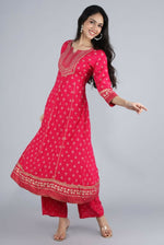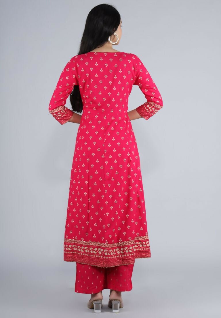 Alvano Alvano Beautiful Printed Kurti with Palazzo and Dupatta for women's and Girls (Pink) - XL
