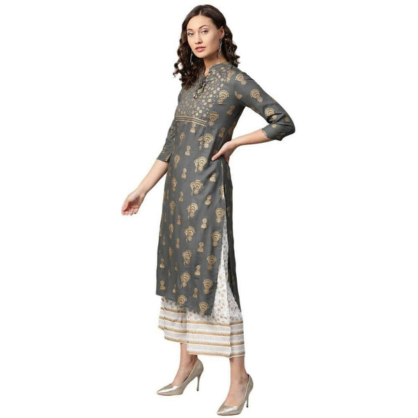 Anubhutee Women Printed Grey Kurta Set with PalazzoColor: Grey Care Instructions: Hand Wash Only Fit Type: Straight Regular Fit Product Information...